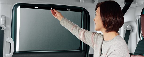 The rear side windows have a privacy sunshade screen inbuilt into the door for convenience